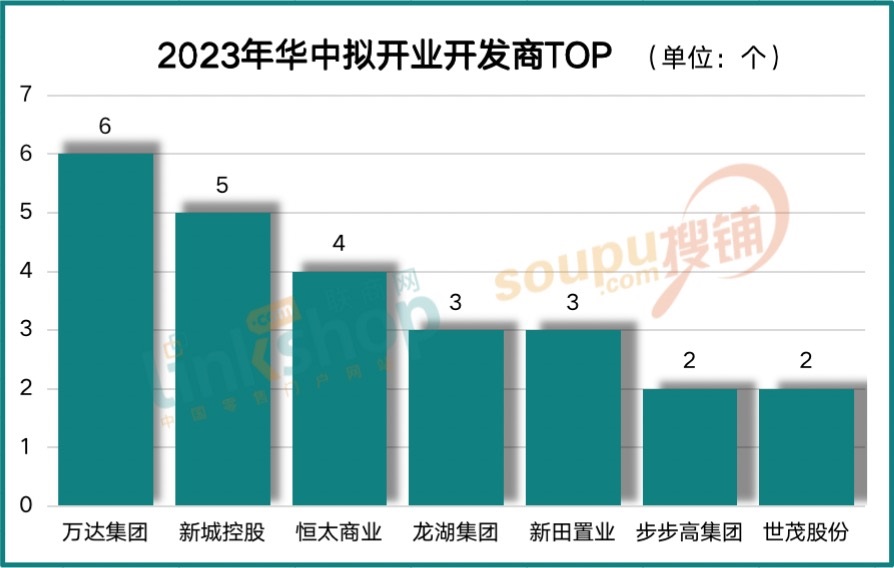 具體來看,萬達集團以6個開業量位列第一,其中湖北4個,湖南和河南各1個;新城控股開業數量以1個之差位居第二,其中湖南3個,湖北和河南各1個;恒太商業4個,其中湖北3個,湖南1個。