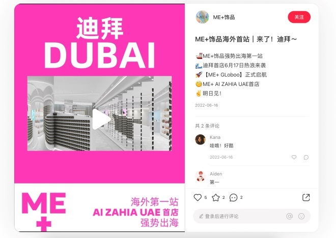 除此之外,品牌出海也成為一些實力較為雄厚的飾品集合店的plan B,2022年6月,ME+首次出海進駐迪拜,同年12月,其又開出了在迪拜的第二門店。